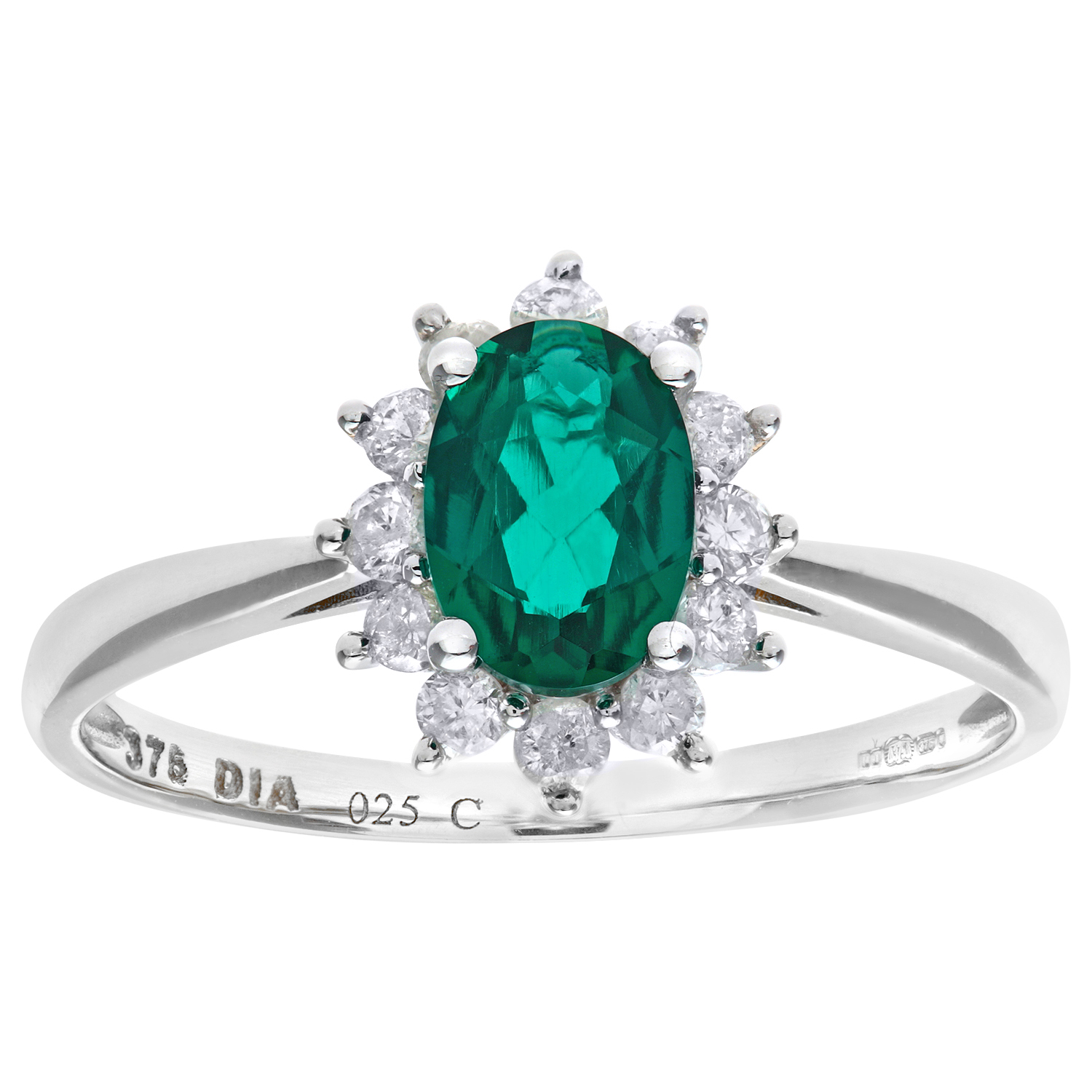 Diamant L'eternel Womens Round Brilliant 0.25ct Emerald and Diamond 9ct White Gold Oval Cluster Ring - Size P (rings)