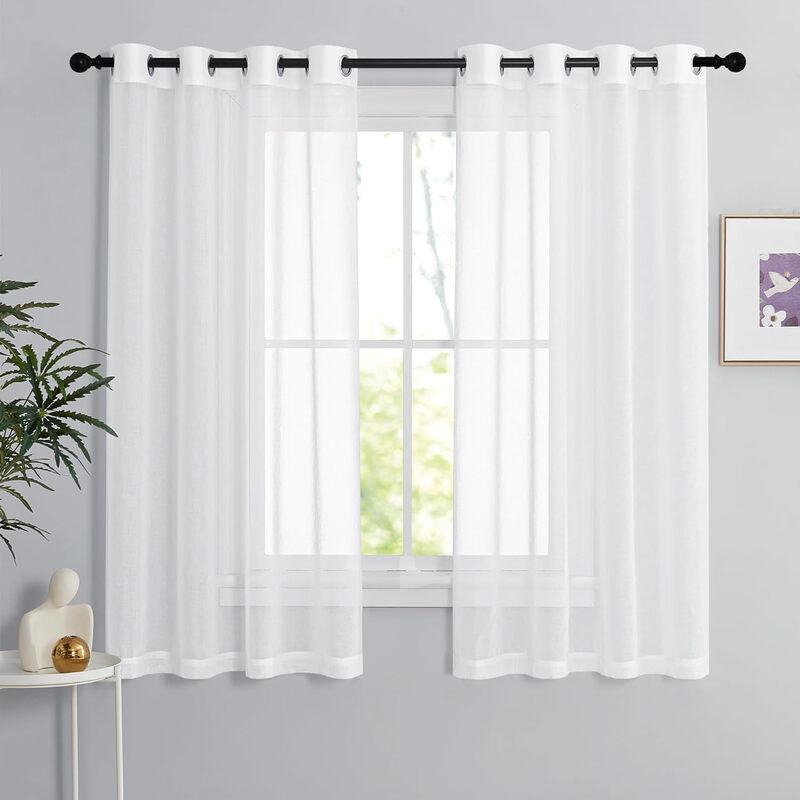 PONY DANCE Sheer Linen Look Curtains with Eyelet, 2 Panels W140 x L160 cm(W55 x L63 inch), White