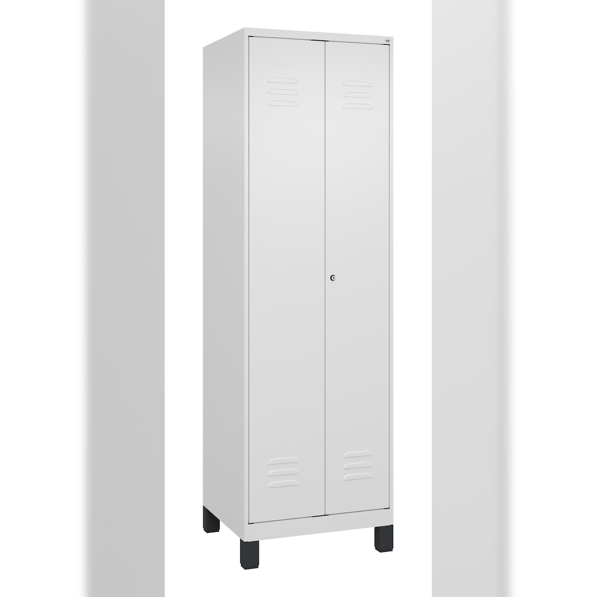 C+P Aufbewahrungs Doppel-Spind Classic PLUS, Füßen, 2 Abteile, 4 Fachböden, HxBxT 195x60x50cm, Zylinderschloss, Verkehrsweiß von PROREGAL