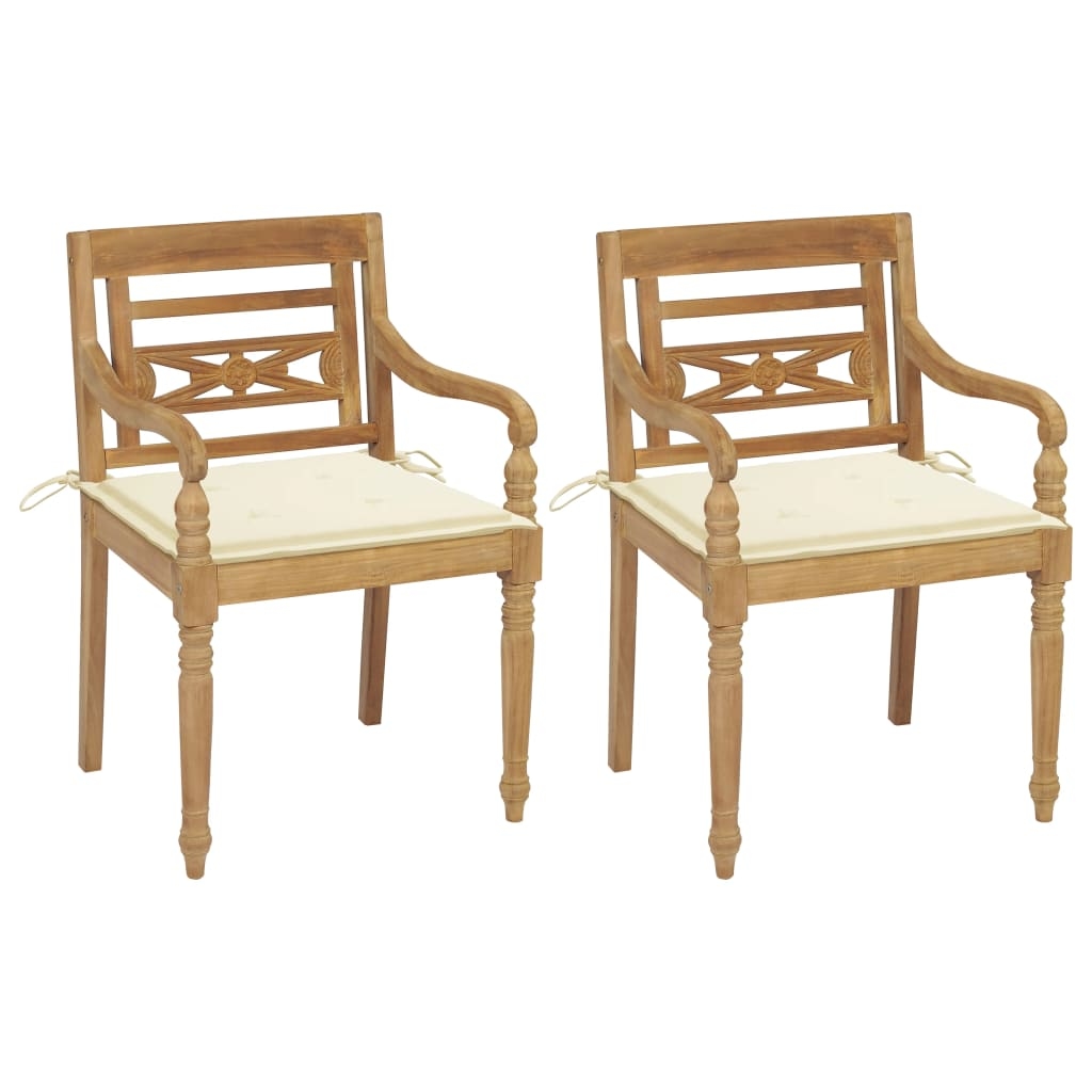 vidaXL 2x Teak Massiv Batavia Stuhl mit Creme Kissen Gartenstühle Gartenstuhl Gartensessel Stühle Gartenmöbel Sessel Essstuhl Terrasse Garten
