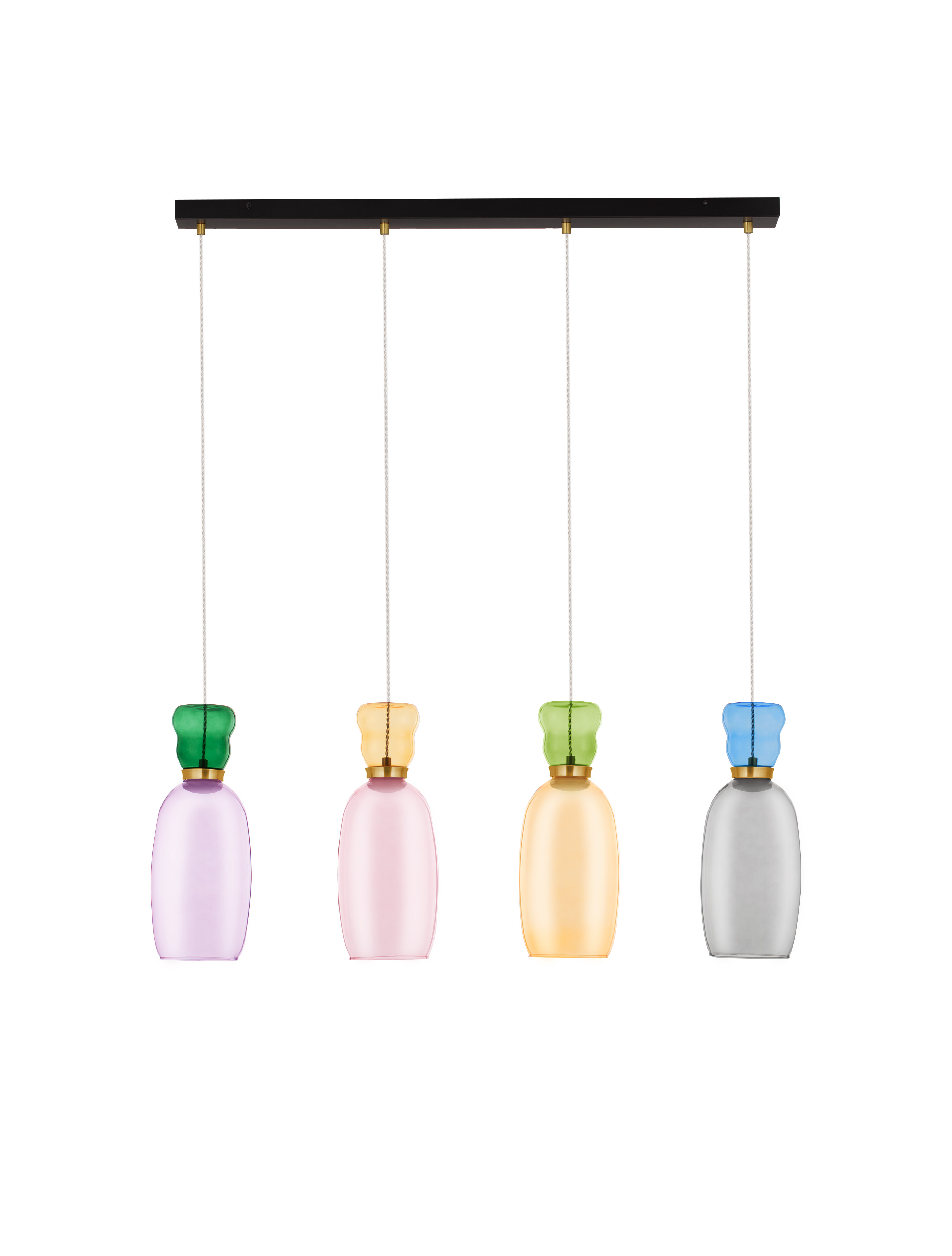 Nova Luce Pluma - hanglamp - 96 x 150 x 15 cm - 36W LED incl. - goud, glanzend jaspis, paars, geel, roze, lichtgroen, lichtblauw en cyaan glas