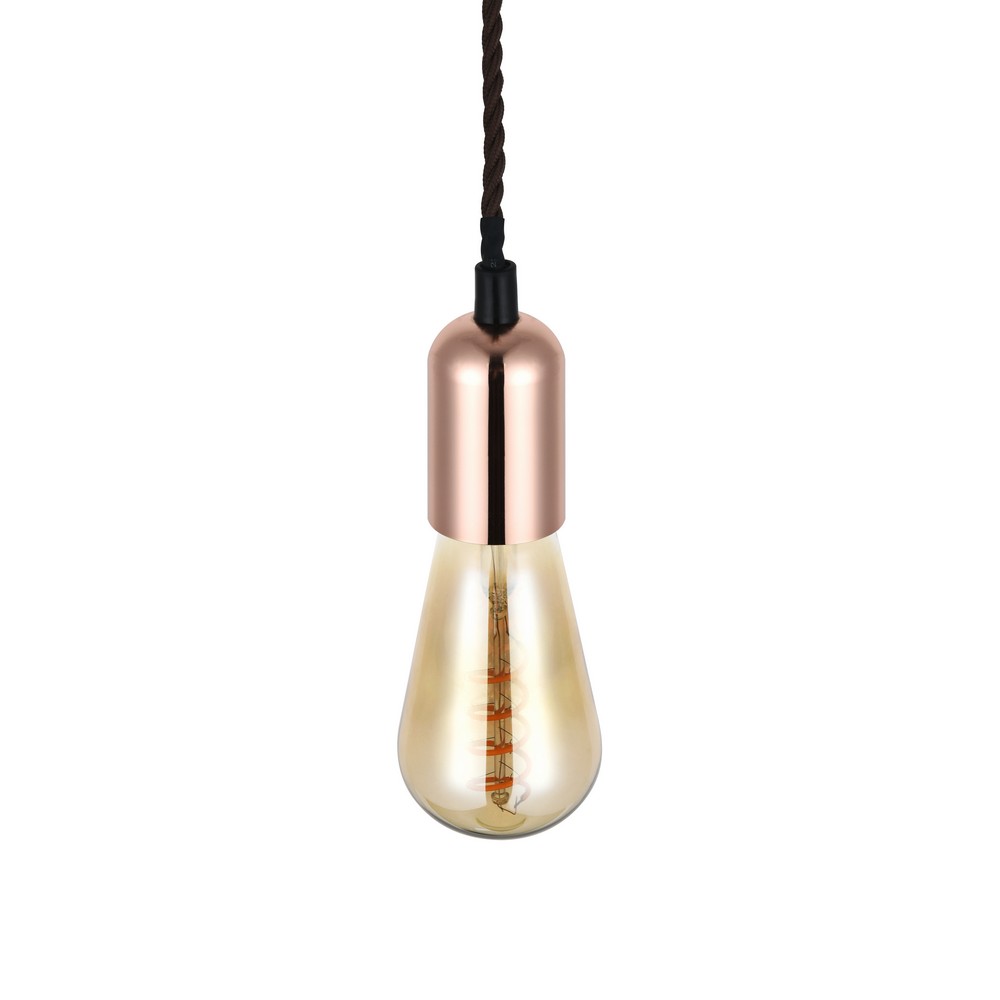 Soho Lighting Rose Gold Bulb Holder Exposed Bulb Pendant Light With Twisted Dark Brown Cable