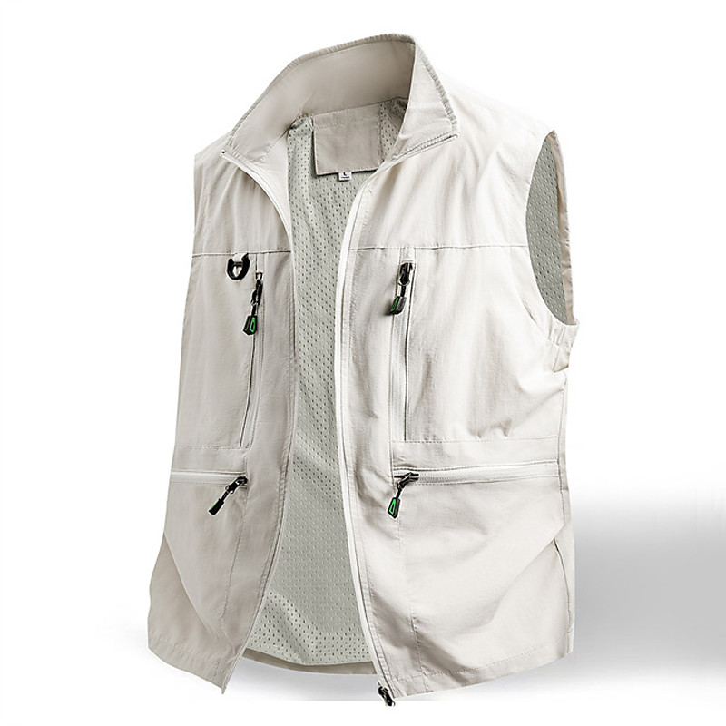 Men's Vest Gilet Fishing Vest Outdoor Daily Fashion Casual Spring Fall Zip Up Pocket Nylon Comfortable Plain Zipper Stand Collar Regular Fit Black White Khaki Army Green Vest