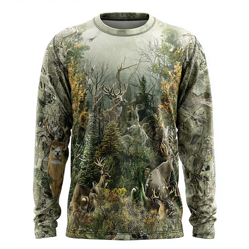 Men's Camo Deer T Shirt Long Sleeve T shirt 3D Print Crew Neck Shirt Fashion Outdoor Street Sports Outdoor Hunting Green 1# Green 2# Green 3# Summer Spring Clothing Apparel S M L XL XXL XXXL