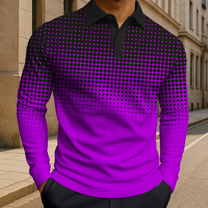 Men's Polka Dot Geometic Polo Long Sleeve Polo Shirts Lapel Casual Athleisure Daily Wear 3D Print Buttons Spring Fall Winter Blue Purple Green