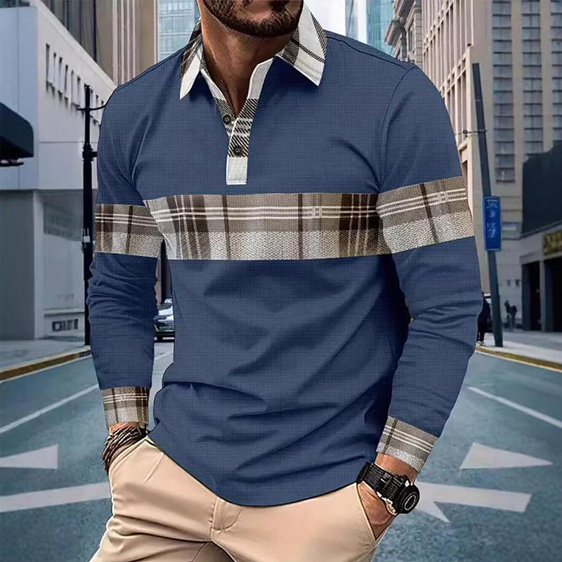 Men's Plaid Color Block Polo Long Sleeve Polo Shirts Lapel Casual Outdoor Street Athleisure Daily Wear 3D Print Buttons Spring Fall Winter Blue Black White