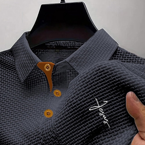 Per uomo Maglia da golf Polo da Golf Lavoro Casuale Bavero Manica Corta Essenziale Moderno Lettera Jacquard Bottoni Estate Primavera Vestibilità regolare Nero Bianco Blu marino Blu Grigio scuro