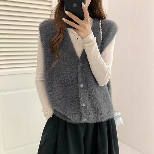Per donna Felpa Cardigan Streetwear Casual Tinta unica Scollo a V Bottoni Lavorato a maglia Senza Maniche Top Regolari Maglia Quotidiano Ferie Uscire Nero Verde chiaro Autunno Inverno