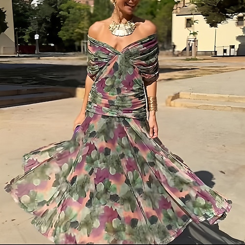 Per donna Abito Midi Vestito in Chiffon Vestito da Festa Abito da Cocktail Abito da invitata a nozze Elegante Moda Moderno Spiaggia Festa serale Feste Vestibilità regolare Semplice Senza Maniche