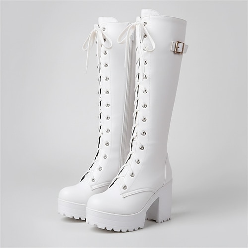 stivali alti fino al ginocchio da donna - scarpe casual chic con tacco basso, adatte per lo streetwear urbano e per gli outfit di tutti i giorni