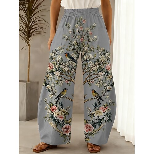 Per donna Gamba larga Pantaloni Vacanza Stile Boho Casual Lunghezza intera Vita Alta Floreale Coulisse Tasca Fascia Elastica Comodo Comodità Traspirabilità Micro-elastico Vacanza Casuale Quotidiano