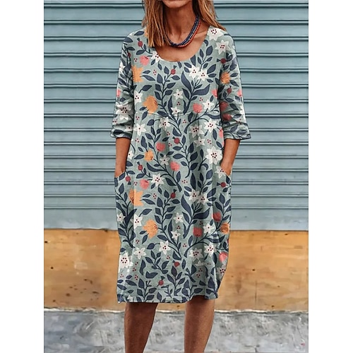 Abito Mini da Donna in Lino Abito da Sole Abito a Linea Abito Estivo Vacanza Casuale Boho Giornaliero Vacanza Fit Larga Floreale Grafica Mezza Manica Collo Giro Blu Nero Grigio Chiaro Estate Primavera