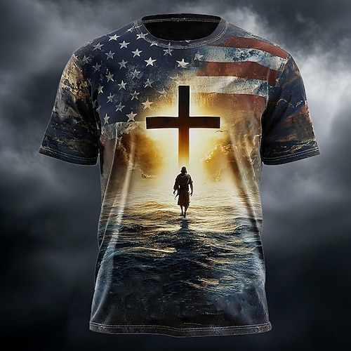 Maglietta della Bibbia da uomo per il 250° anniversario dell'America croce di Gesù bandiera americana stelle e strisce patriottica religiosa stampa all over a maniche corte collo giro regalo di
