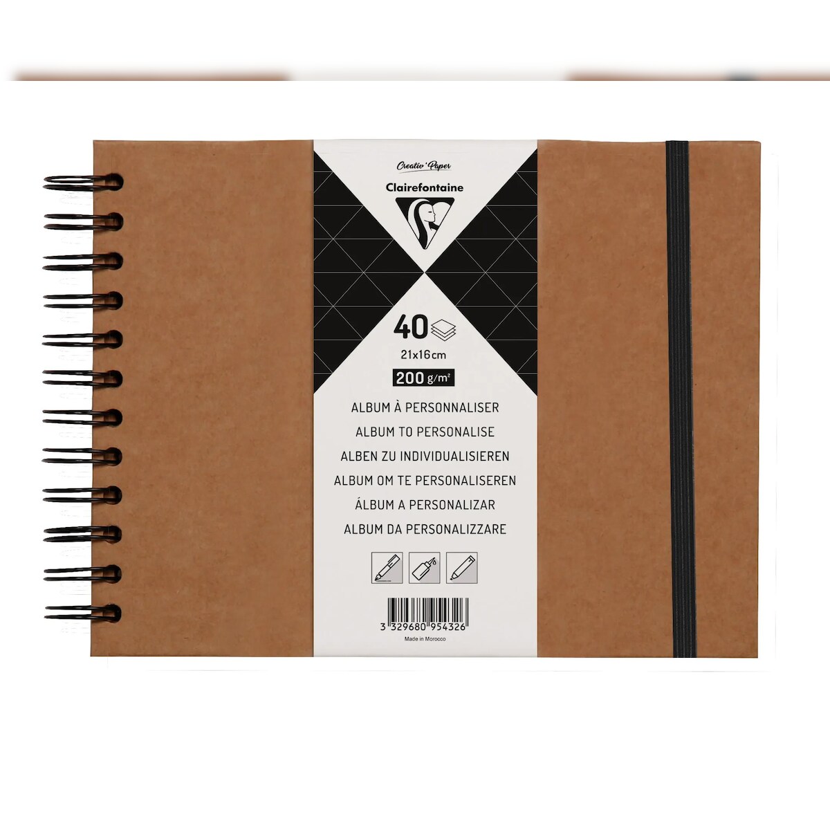 Clairefontaine 3x Album DIY zum Personalisieren, 40 Blatt Kraftpapier 200g im Format 21x16 cm, Umschlag aus Kraftkarton - Kartonbraun 95432C