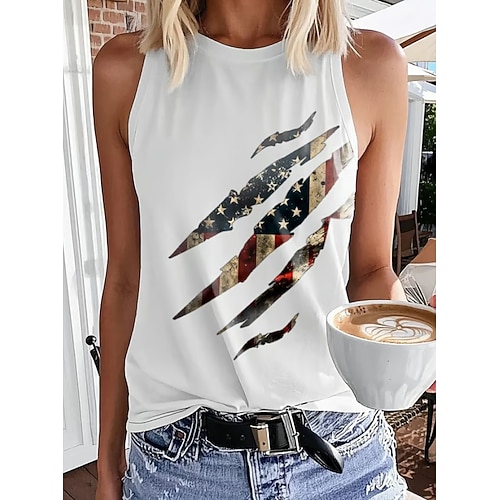Giorno dell'Indipendenza Americana Per donna Maglietta Grafico Bandiera Vintage Tropicale Elegante Senza Maniche Girocollo Top Regolari Quotidiano Blu Nero Bianco Azzurro cielo Verde Estate Primavera