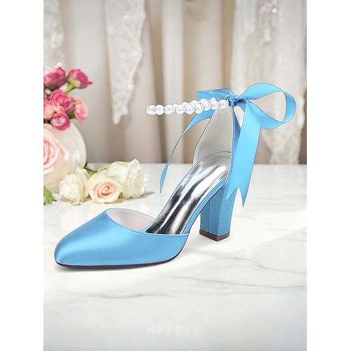 Women's Navy Satin High Heel Sandals – Pearl Ankle Strap Stiletto Heels with Ribbon Bow for Weddings and Elegant Cocktail Party and Special Occasions
