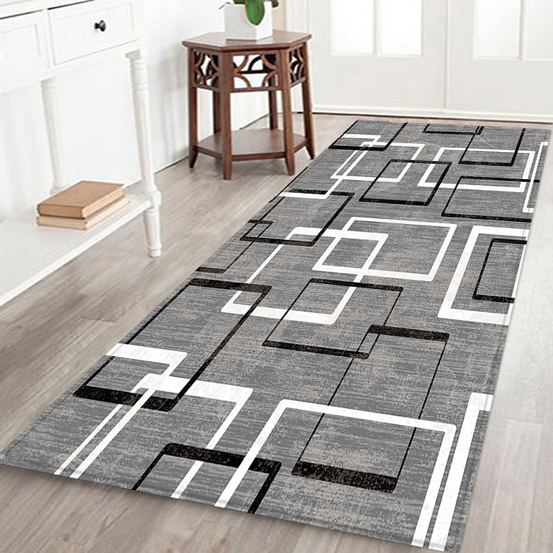 Hallway Runner Rug Geometric Pattern Flannel Fabric Printed Home Decoration Entrance Dustproof Floor Mat Absorbent Soft Bathroom Cushion