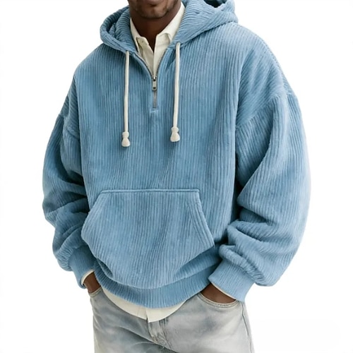 Per uomo Felpa con cappuccio Velluto a coste Felpa con cappuccio e zip corta Aalbicocca Rosso bordeaux Nero Bianco Blu marino Con Cappuccio Semplice Tasca a marsupio Testurizzato Casuale Quotidiano