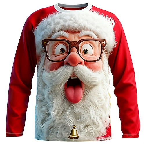 Weihnachten Herren Weihnachtsmann Lustig T Shirt Langarm T-Shirt 3D-Druck Rundhalsausschnitt Hemd Mode Basic 3D Straße Lässig Täglich Blau Gelb Rote Sommer Frühling Bekleidung S M L XL XXL XXXL