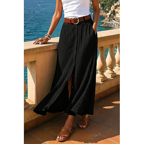 Per donna Gonna da vacanza Gonna in finto cotone e lino Moda stiledella nonnacostiera Casual Estate Maxi Misura del girovita medio Gonne Tinta unita Inelastico Quotidiano Vacanza Nero Bianco Blu