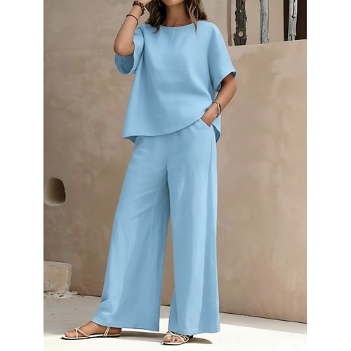 Per donna Set da due pezzi Set di Pantaloni Bolero Manica Corta Girocollo Semplice Moda Streetwear Casuale Quotidiano All'aperto Blu Nero Bianco Estate Vestibilità regolare