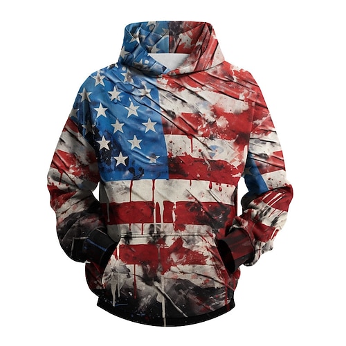 Herren Amerikanische Flagge Kapuzensweatshirt Mode Täglich Lässig Vintage-Retro Mit Kapuze Urlaub Party Streetwear Festival Blau Rote Rot 2 Drucken Herbst Winter Designer S M L XL 2XL