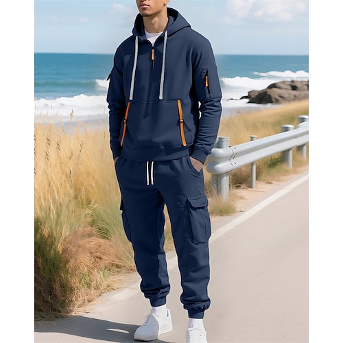 Per uomo Tuta da Ginnastica Set di abiti Set di felpe con cappuccio Felpa con Cappuccio All'aperto Quotidiano Sportivo Coulisse Tasca Mezza cerniera Semplice Nero Blu marino Cachi Poliestere