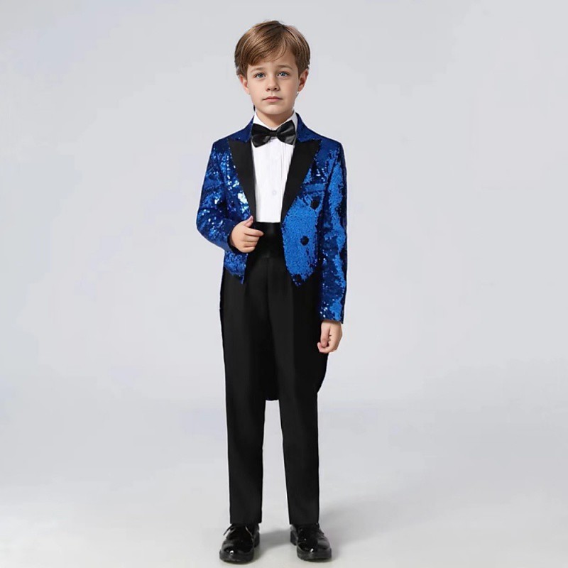 3 Pieces Ring Bearer Suit Boys' Kids Suit Blazer Pants Tie Boy's Formal Suit Casual Outdoor Party Fashion Cool Basic Solid Color Blue Silver Black Polyester