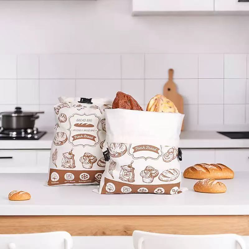 2-Pack Cotton Bread Bag with TPU Snap Closure, Reusable Bakery Packaging Bag, Eco-Friendly Cloth Bread Storage, Sandwich and Pastry Keeper, Durable Kitchen Food Bag