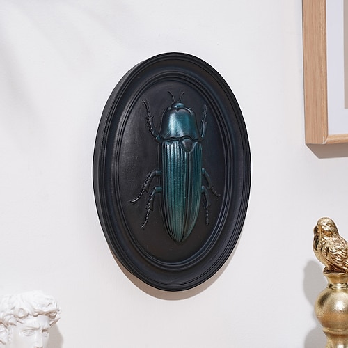 decorazione da parete a forma di scarabeo dorato, ornamento di insetto con cornice ovale nera, scultura in resina ABS fatta a mano, da collezione per gli appassionati di insetti, ideale per musei di