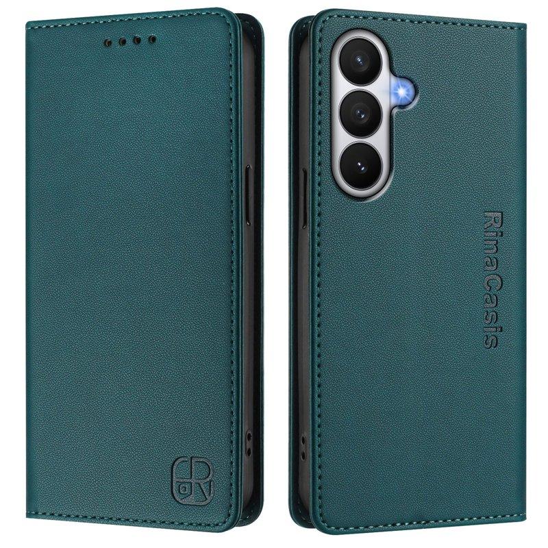 RINACASIS Samsung Galaxy S26 / S26 Pro Fodral Äkta Läder RFID Skydd - Mörkgrön