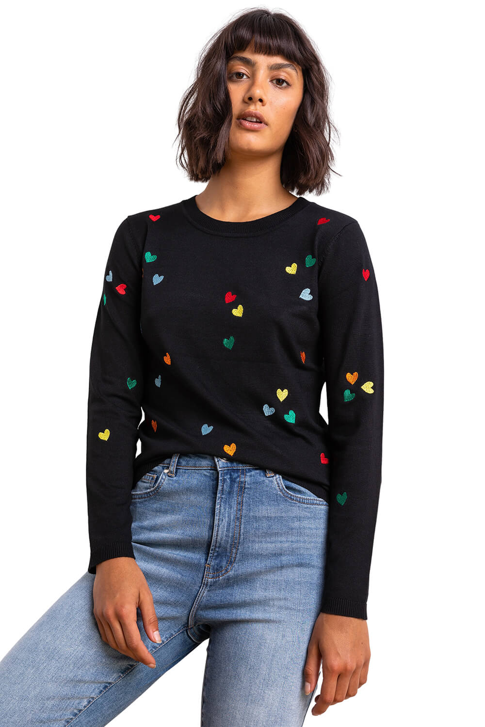 Roman Womens Heart Print Embroidered Jumper - Black - Size 14 UK | Roman Sale | Discount Designer Brands