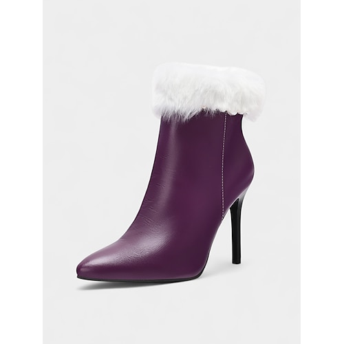 stivaletti da donna in similpelle rossa con polsino in pelliccia sintetica e cerniera, punta affilata, elegante tacco a spillo, perfetti per Natale, feste e occasioni festive
