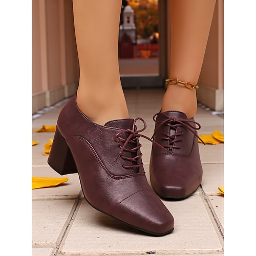stivaletti da donna marroni con lacci e tacco a blocco – classico stile vintage anni '50, perfetti per l'ufficio, le uscite quotidiane e gli eventi autunnali