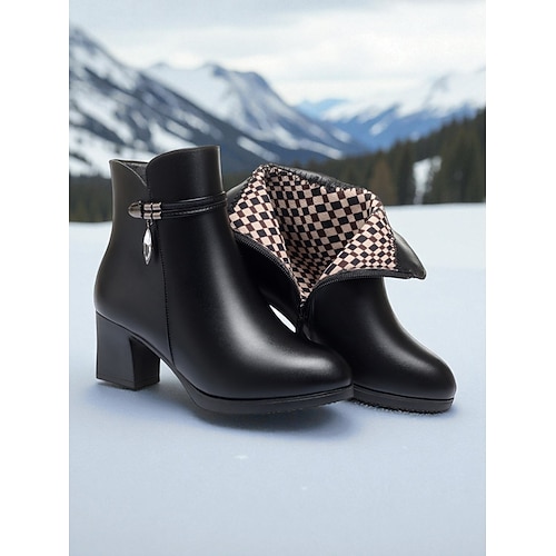 stivaletti invernali da donna con fodera in pelliccia sintetica e tacco spesso: comodi ed eleganti, ideali per il freddo, le uscite quotidiane e le vacanze invernali