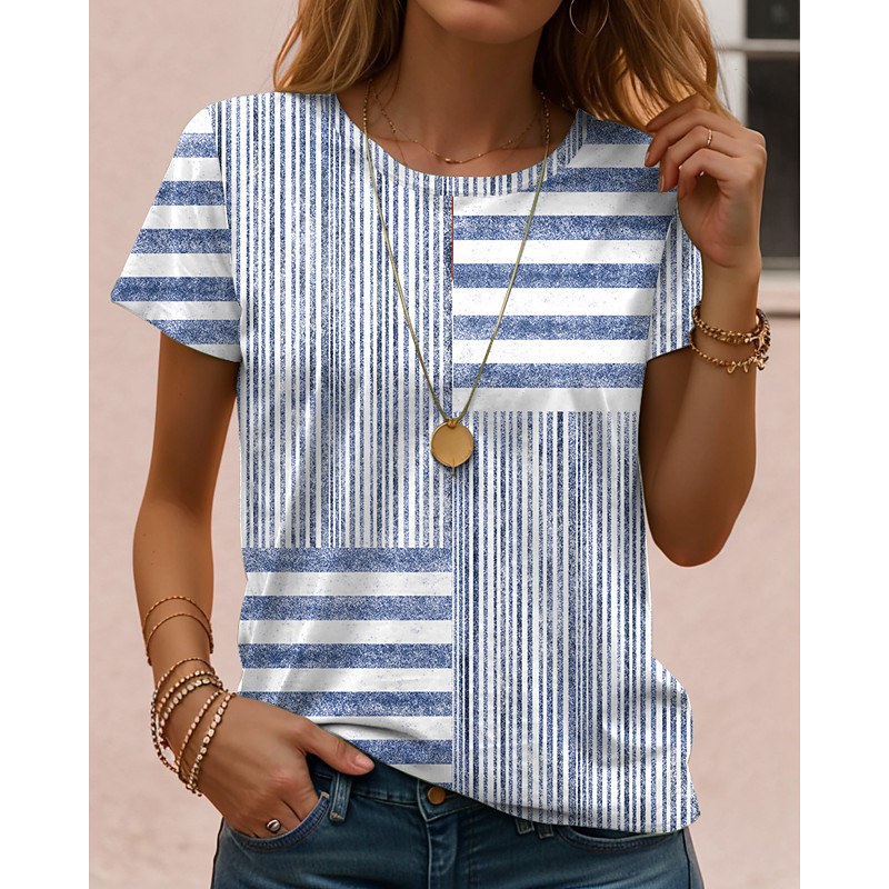 Women's T Shirt Graphic Geometric Vintage Classic Casual Short Sleeve Crew Neck Regular Tops Daily Weekend Beach Wear Print Blue Red Purple Gray Summer Spring
