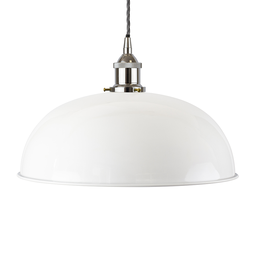 Soho Lighting Clay White Classic Small Pantry Metal Painted Pendant Light with Brushed Chrome Lamp Holder and Grey Twisted Cable