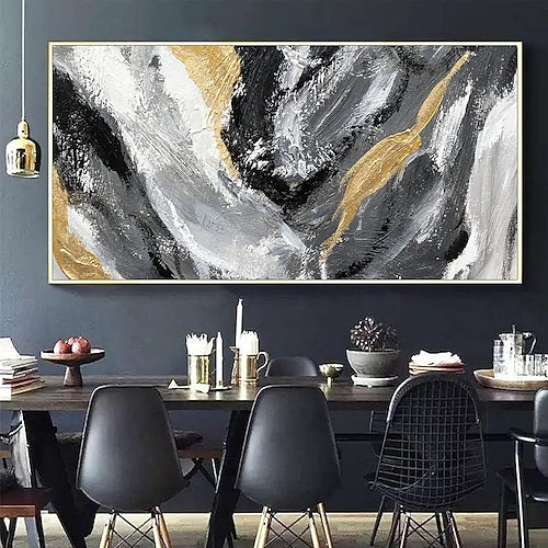 dipinto a olio fatto a mano su tela decorazione della parete arte moderna nero bianco e oro trama astratta per soggiorno decorazioni per la casa dipinto senza cornice arrotolato non stirato