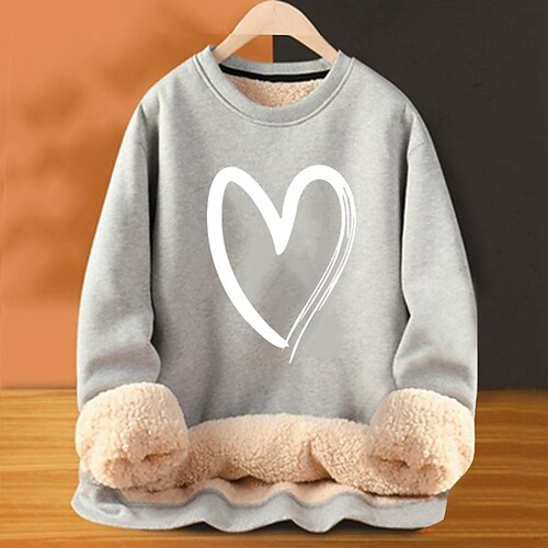 Herren Fleece-Sweatshirt Schwarz Gelb Rote Orange Hell Gray Rundhalsausschnitt Herz Einfach Grafikdrucke Druck Lässig Täglich Ausgehen Polyester Streetwear Lässig Herbst Winter Bekleidung