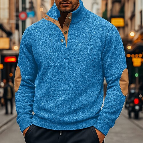 Herren Sweatshirt Pullover Kapuzensweatshirt Pullover Kapuzenpullover mit Knöpfen Weinrot Schwarz Marineblau Grün Grau Stehkragen Einfach Patchwork Sport Outdoor Lässig Täglich Streetwear Cool