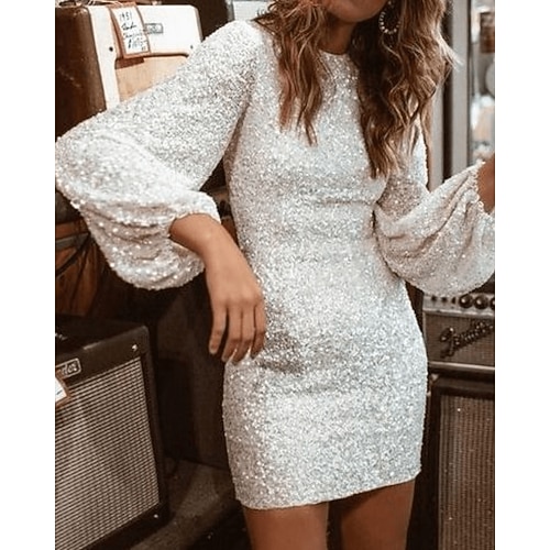 Per donna Mini Abito Abito con Paillettes Abito da Ballo Vestito da Festa Abito da Cocktail Moderno Manica a Lanterna Festa serale Feste Cocktail party Taglia piccola Semplice Manica Lunga Girocollo