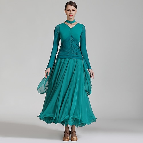 Balli da sala Abito Colore Puro Per donna Prestazioni Addestramento Senza maniche Alto Chiffon Chinlon