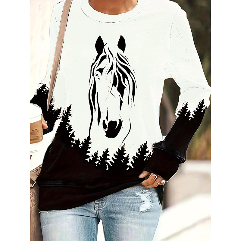 Women's Pullover Sweatshirt Graphic Animal Casual Long Sleeve Crew Neck Regular Tops Street Casual Holiday Print White Pink Blue Brown Green Spring Fall Winter