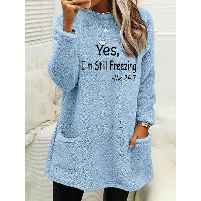 Women's Pullover Sweatshirt Letter Casual Long Sleeve Crew Neck Long Tops Street Dailywear Pocket Print Blue Black White Pink Army Green Fall Winter