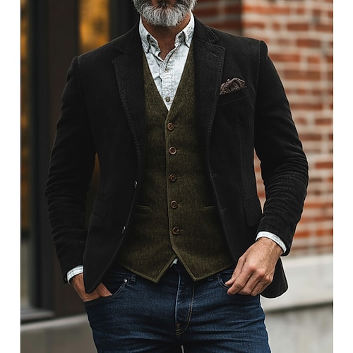 Per uomo Giacca in Velluto a Coste Colletto ad incastro Moda Classico Casual Tinta unita Blazer Nero Marrone Verde Vestibilità su misura Monopetto Due Bottoni