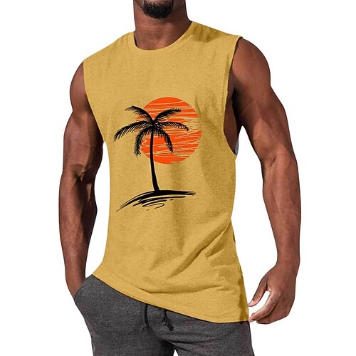 Per uomo Canotta Canottiera Maglietta senza maniche Senza Maniche Girocollo Estate Albero di Cocco Moda Designer Muscolo Stampa Casuale All'aperto Palestra Nero Bianco Giallo Maglietta Top per Uomo