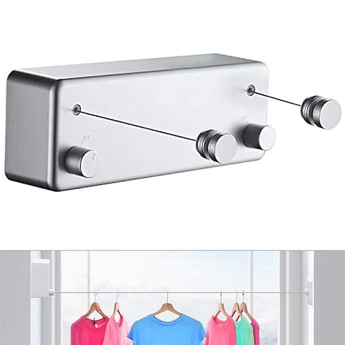 Stendibiancheria retrattile, stendibiancheria retrattile, stendibiancheria da interno, senza trapano, filo di acciaio pieghevole invisibile da parete, per uso domestico e su balconi.