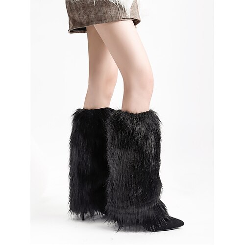 stivali alti fino al ginocchio in pelliccia sintetica da donna – stampa in bianco e nero, comode calzature invernali per un freddo all'avanguardia e uno stile vacanziero