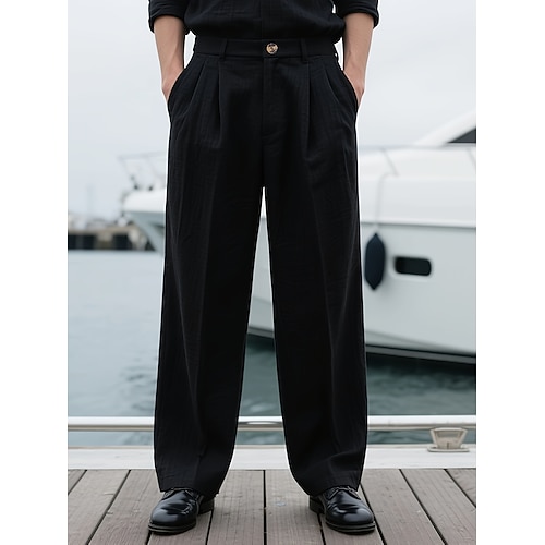 Per uomo Pantaloni di Lino Pantaloni Pantaloni Eleganti Pantaloni Estivi Pantaloni plissettati Tasca Gamba Dritta Semplice Comodità Morbido Formale Affari Casuale Moda Classico Bianco Blu marino