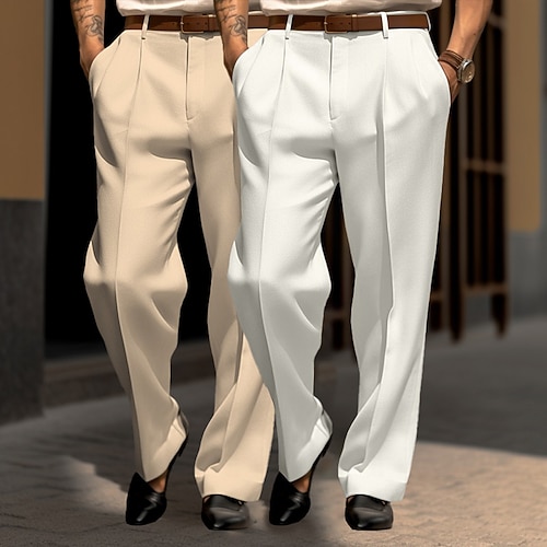 Per uomo Pantaloni Pantaloni Eleganti Pantaloni da Abito Tasca Frontale Gamba Dritta Confezione multipla Semplice Comodità Lunghezza intera Matrimonio Feste Affari Moda Chic Moderno Bianco kaki